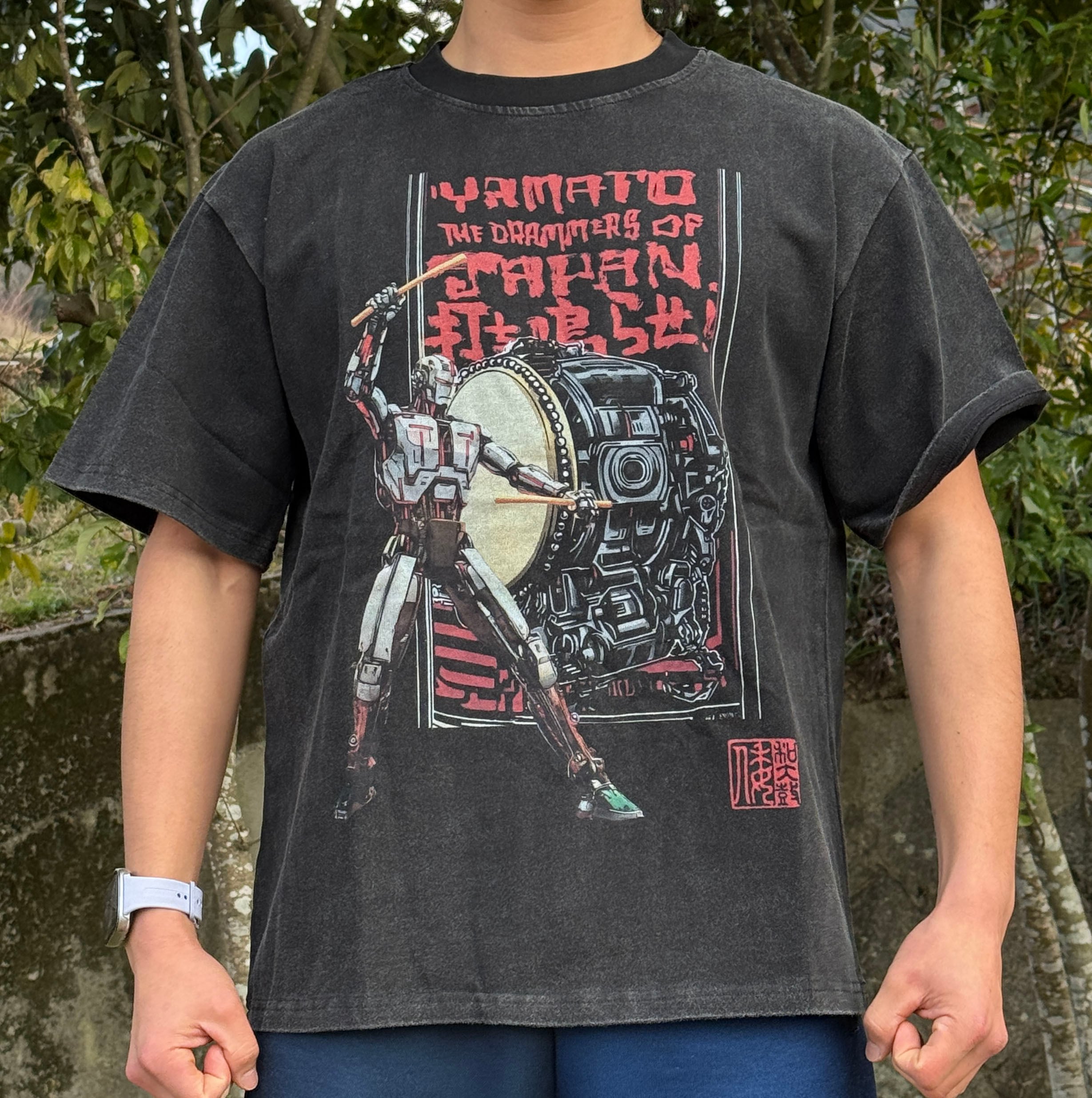 倭オリジナルTシャツ(ロボット)黒+ビンテージ加工